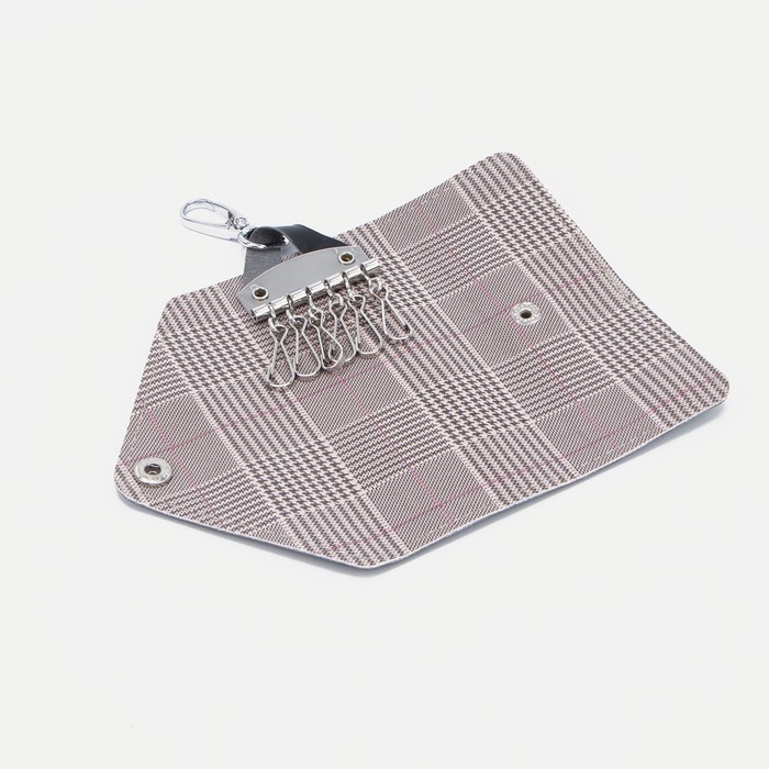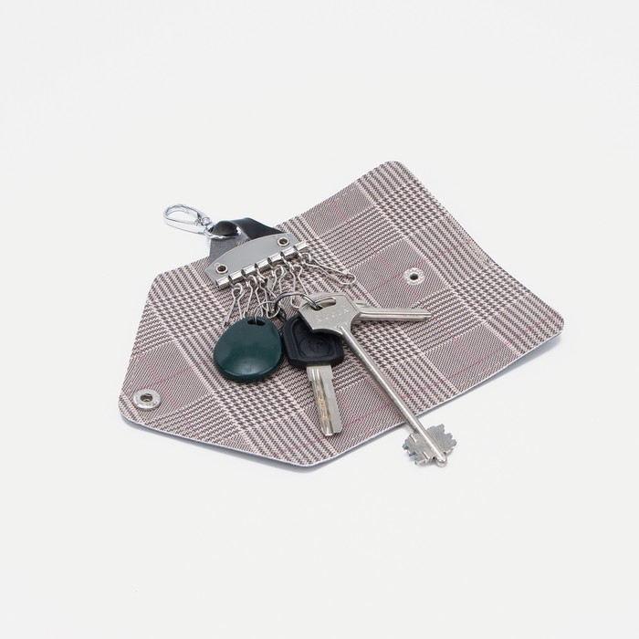 Ключница на кнопке, длина 13,5 см,7 карабинов, цвет чёрный