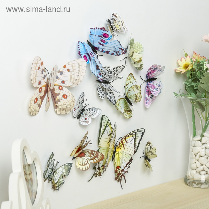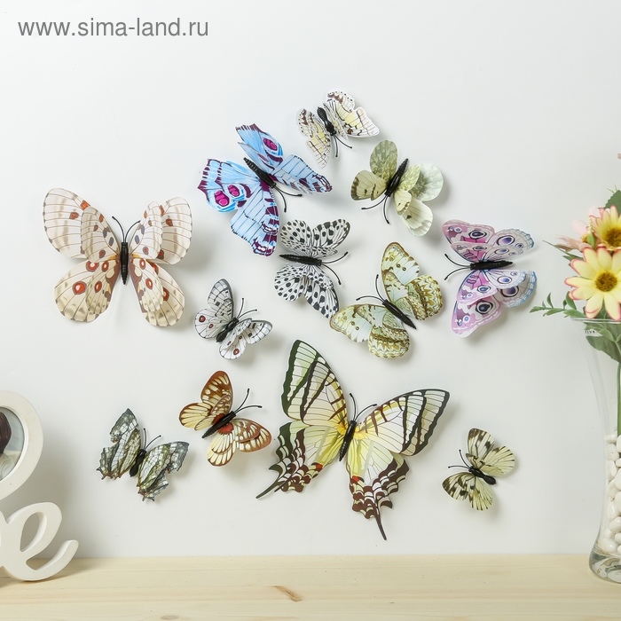 Магнит пластик "Бабочки" набор 12 шт МИКС h=4,4,5,5,6,8,9,5,13,5,14,5 см