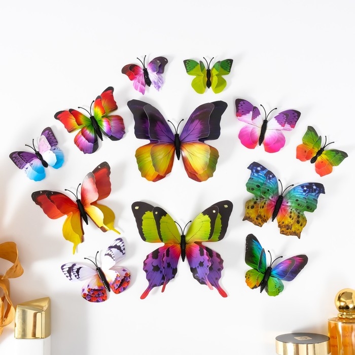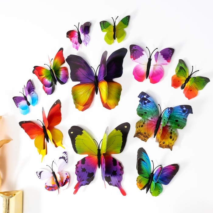 Магнит пластик "Летние бабочки" набор 12 шт МИКС h=4,4,5,5,6,8,9,5,13,5,14,5 см
