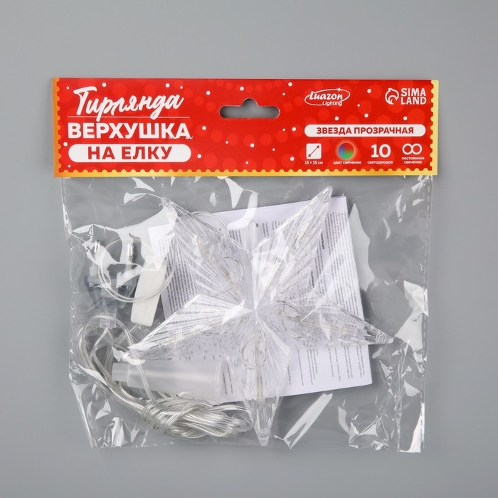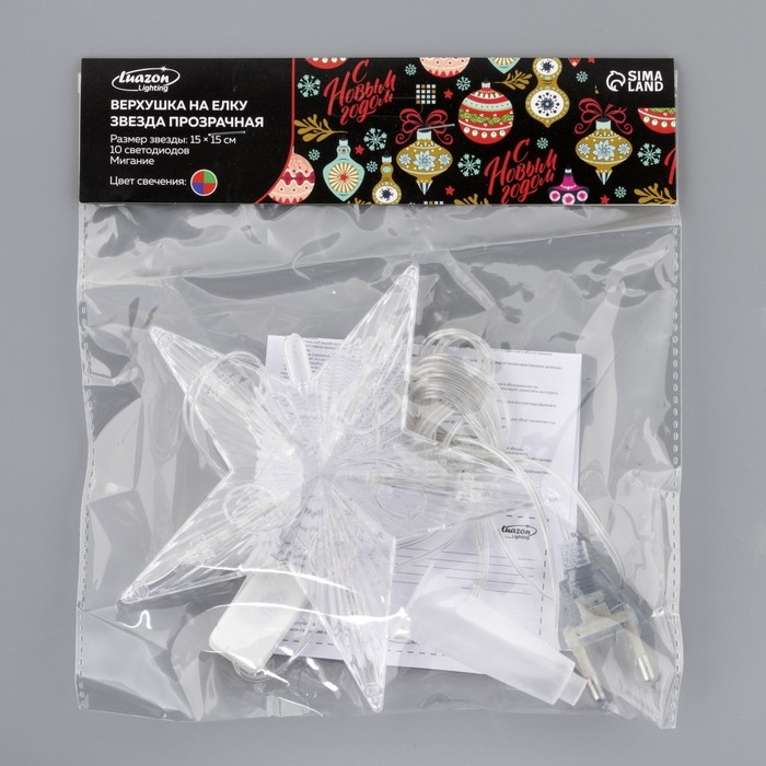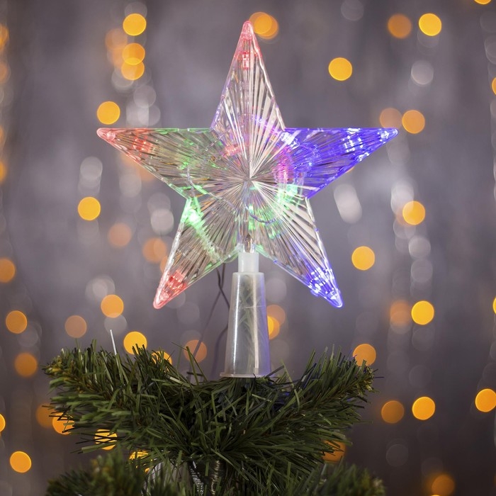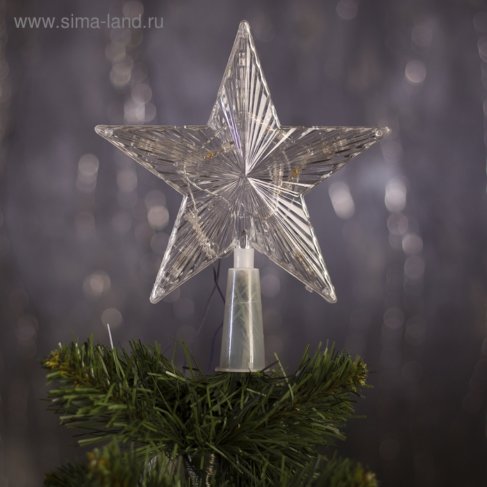 Светодиодная верхушка на ёлку «Звезда прозрачная» 15 см, 10 LED, провод 2 метра, 220 В, свечение RG/RB