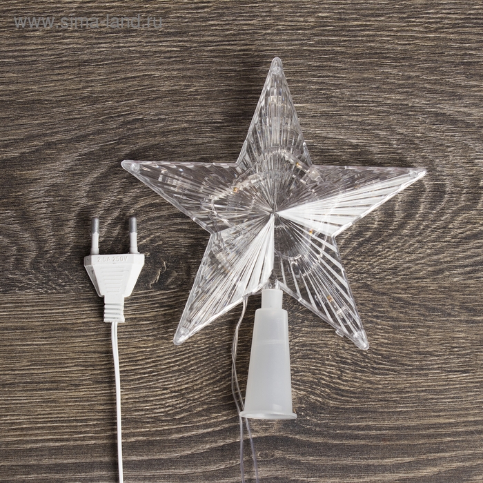 Светодиодная верхушка на ёлку «Звезда белая» 16 см, 10 LED, провод 2 метра, 220 В, свечение мульти