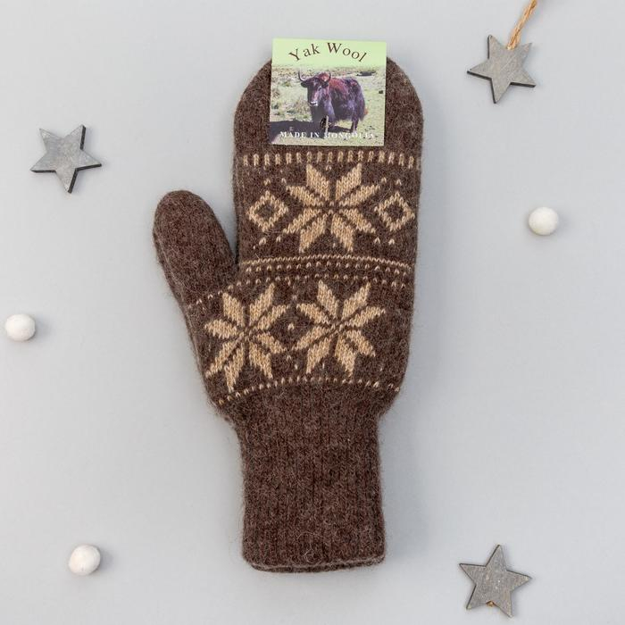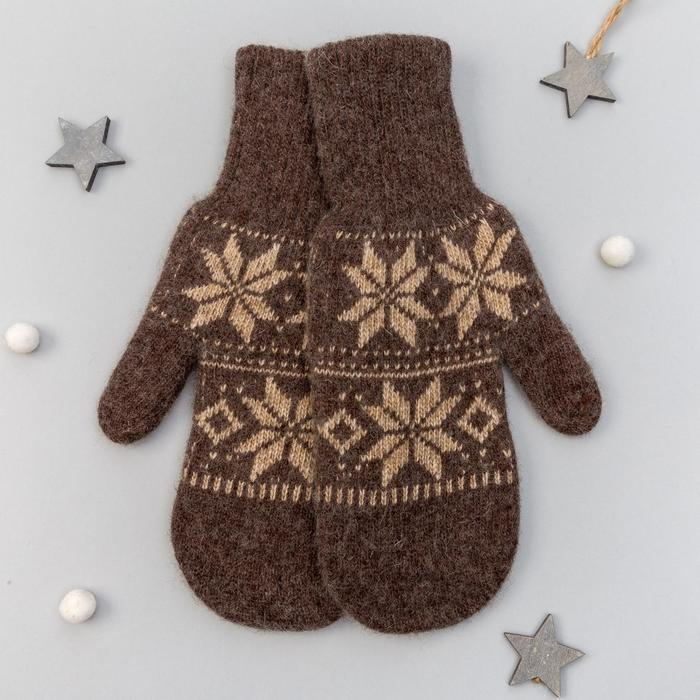 Варежки женские из монгольской шерсти, цвет шоколадный, размер 17-19 (6,5-7,5)