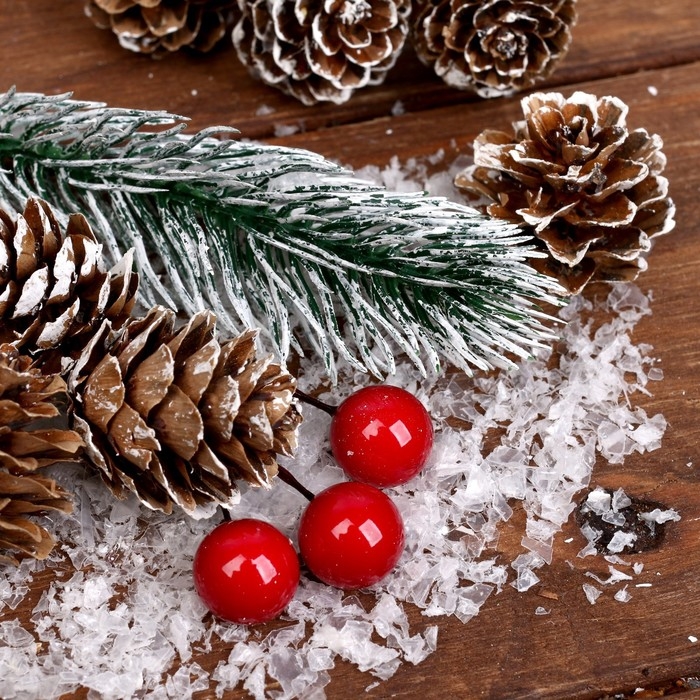 Новогодняя композиция «Веточки с рябиной и шишками» 12 × 12 × 18 см