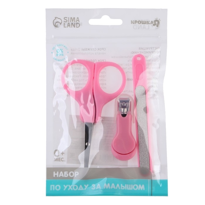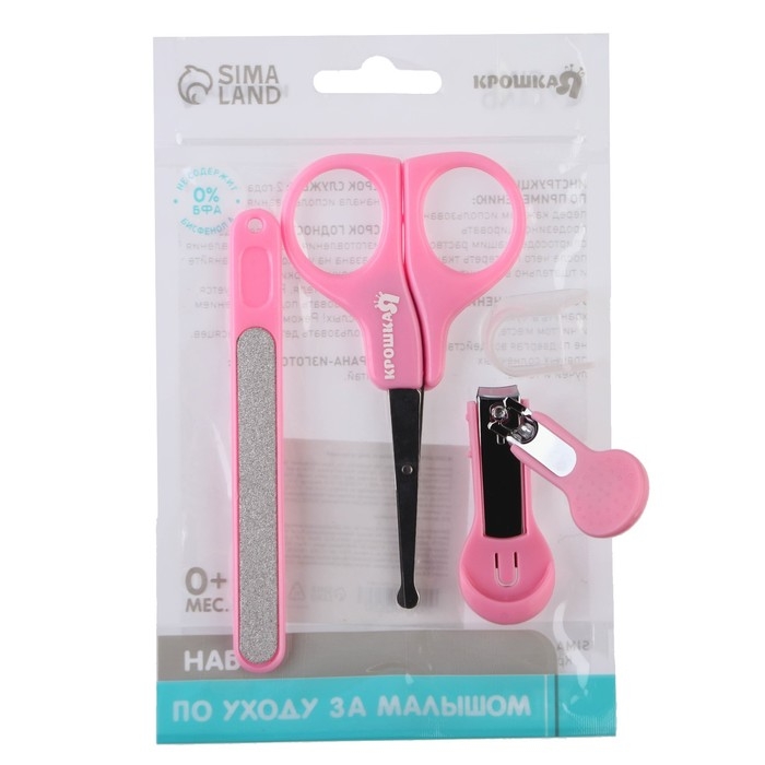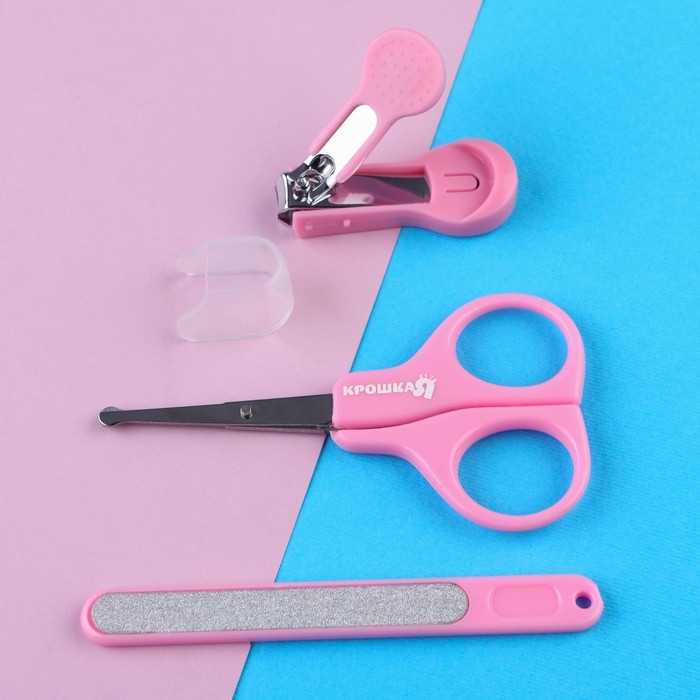 Детский маникюрный набор, 3 предмета: ножницы, пилка, книпсер, от 0 мес., цвет розовый