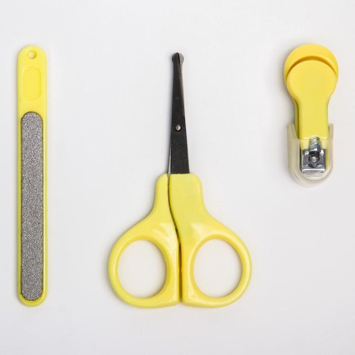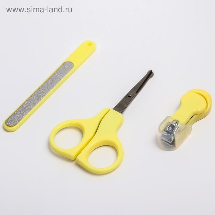 Детский маникюрный набор, 3 предмета: ножницы, пилка, книпсер, от 0 мес., цвет жёлтый