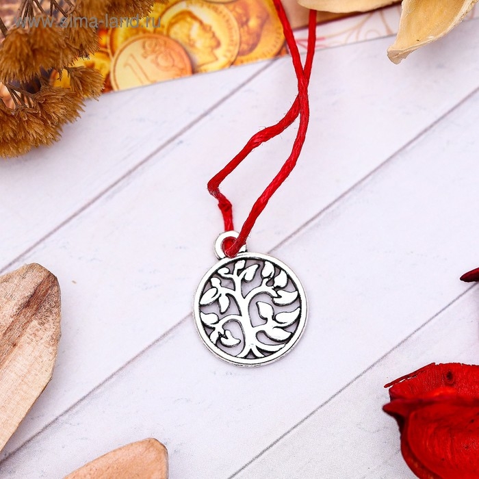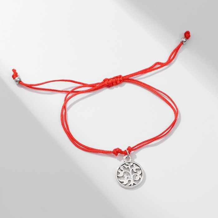 Браслет-оберег «Красная нить» денежное дерево, цвет чернёное серебро, 20 см