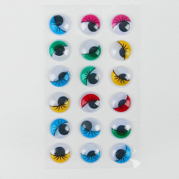 Глазки с ресничками на клеевой основе, набор 18 шт., размер — 2 см