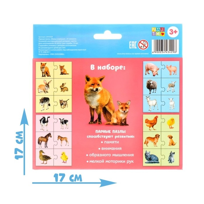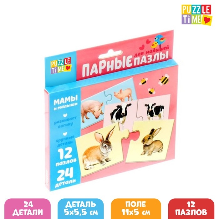 Парные пазлы «Мамы и малыши», 12 пазлов, 24 детали