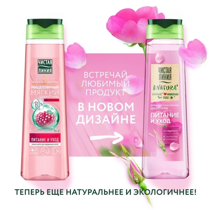 Шампунь для окрашенных волос мицеллярный Чистая линия "питание и уход", 400 мл