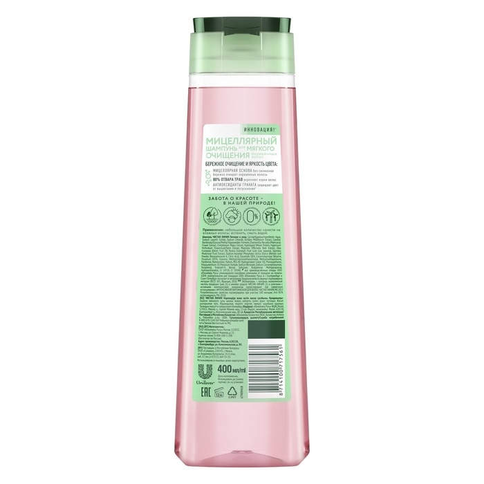 Мицеллярная основа бережно очищает окрашенные волосы, не вымывая цвет. Антиоксиданты граната защищают цвет от выцветания и потускнения. 80% отвара трав укрепляет корни и ухаживает за волосами по всей длине. Подходит для окрашенных, тонированных и мелированных волос. В 3 раза эффективнее вместе с бальзамом-ополаскивателем.