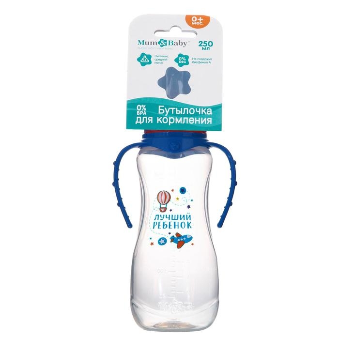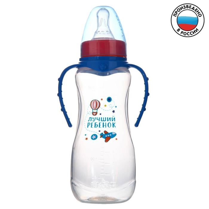 Бутылочка для кормления «Лучший ребёнок», классическое горло, приталенная, с ручками, 250 мл., от 0 мес., цвет синий