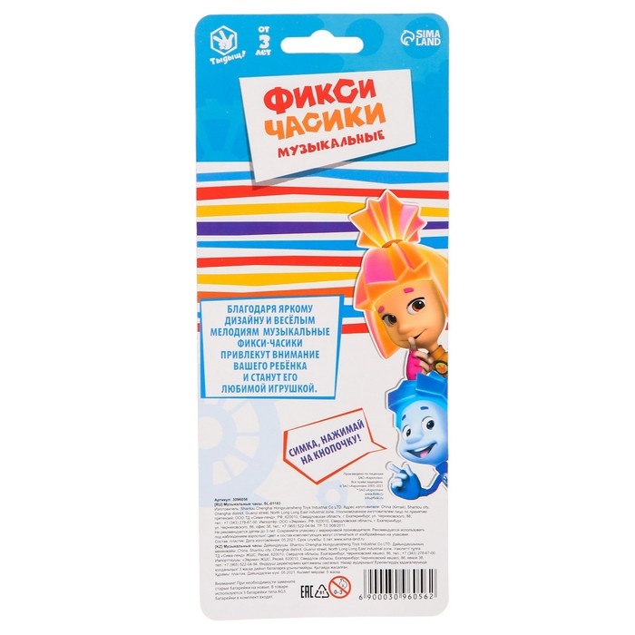 Часы музыкальные «Фиксики: Фикси-часики», звук, работает от батареек
