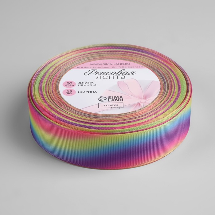 Лента репсовая «Волны», 25 мм, 18 ± 1 м, разноцветная