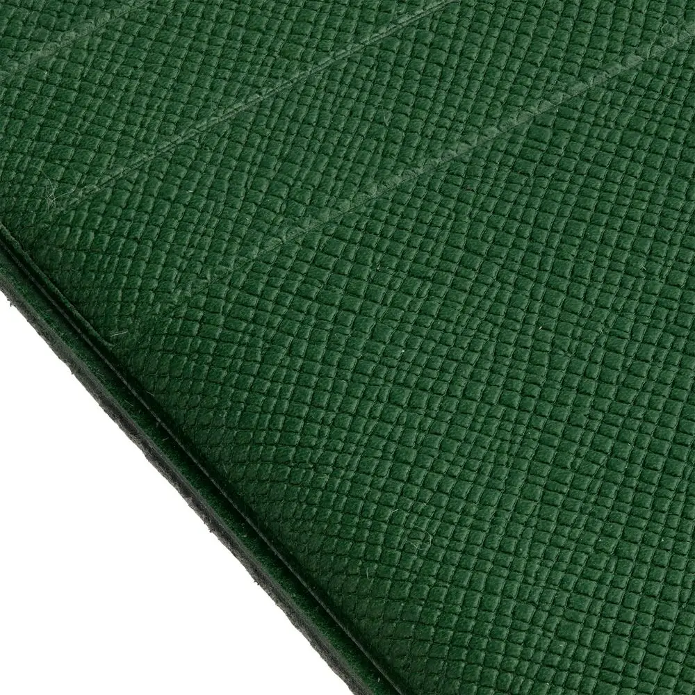Чехол для карточек из искусственного материала, имитирующего сафьяновую кожу, с шестью отделениями для кредитных карт и одним — для сложенных купюр.