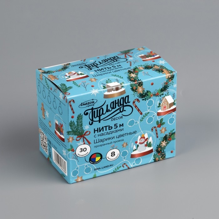Гирлянда «Нить» 5 м с насадками «Шарики цветные», IP20, прозрачная нить, 30 LED, свечение мульти, 8 режимов, 220 В
