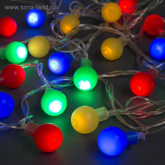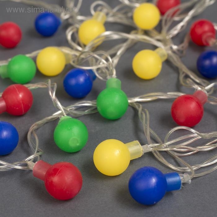 Гирлянда «Нить» 3 м с насадками «Шарики», IP20, прозрачная нить, 20 LED, батарейки AAх3 (нет в комплекте), свечение мульти