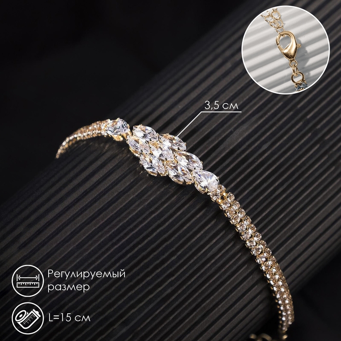 Браслет со стразами «Циркон» изыск, узор, цвет белый в розовом золоте, 15см