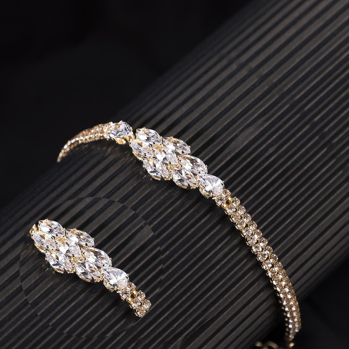 Браслет со стразами «Лёд» красота линий, цвет белый в золоте