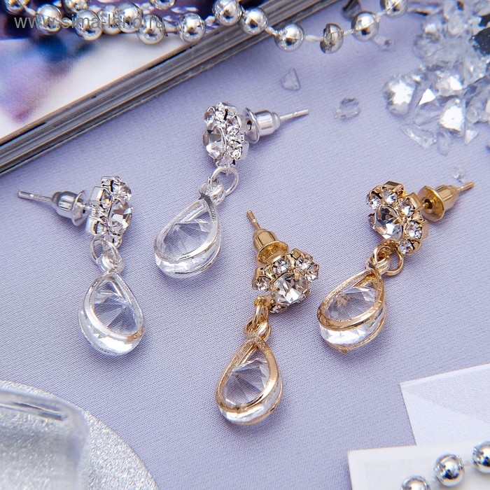 Серьги со стразами «Ромб» блеск, цвет МИКС