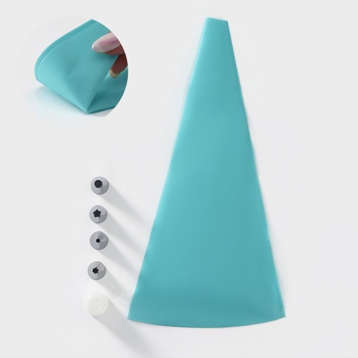 Набор кондитерский, 6 предметов: адаптер, мешок, 4 насадки d=1,8 см, цвет бирюзовый