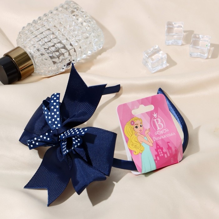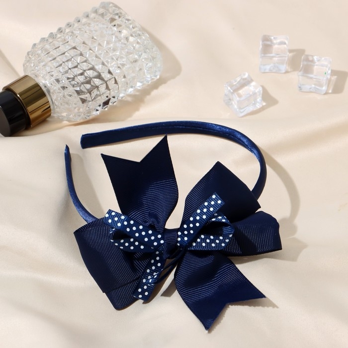 Ободок для волос "Школьница" бант в горошек, 1 см, синий