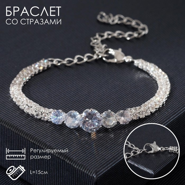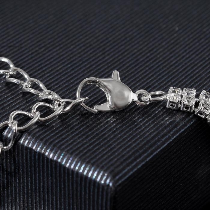 Браслет со стразами «Циркон» изыск, дуга, цвет белый в серебре, 15см