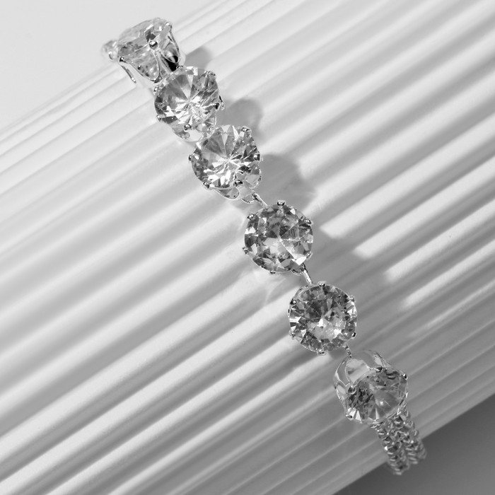Браслет со стразами «Циркон» изыск, дорожка, цвет белый в серебре, 15см