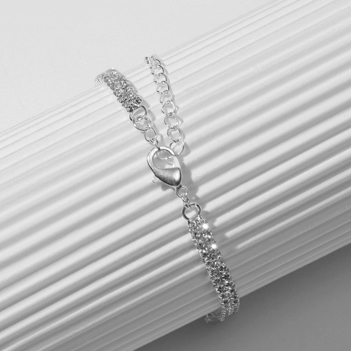 Браслет со стразами «Шайн» 2 ряда, цвет белый в серебре