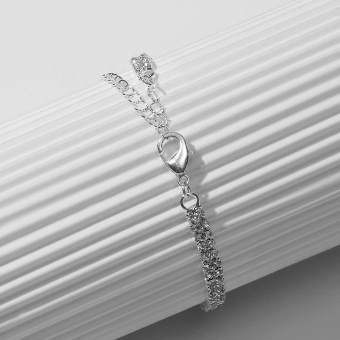 Браслет со стразами «Шайн» 2 ряда, цвет белый в серебре