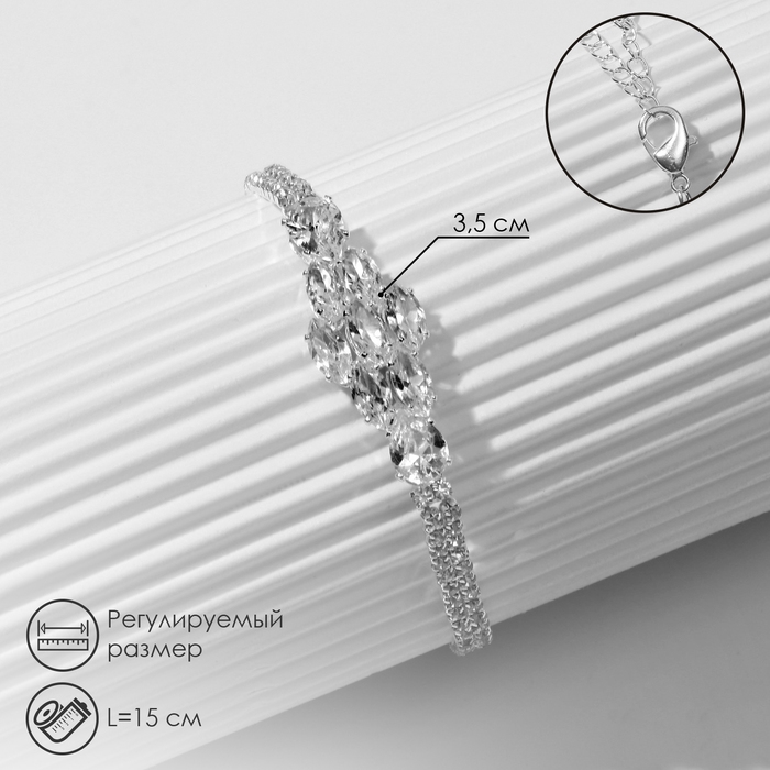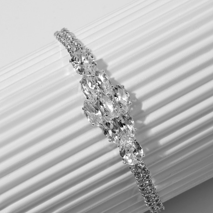Браслет со стразами «Циркон» изыск, узор, цвет белый в серебре, 15см