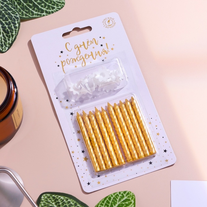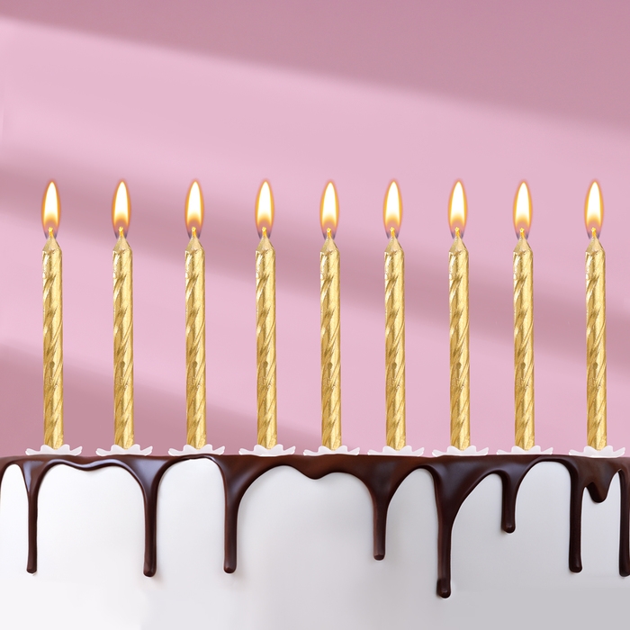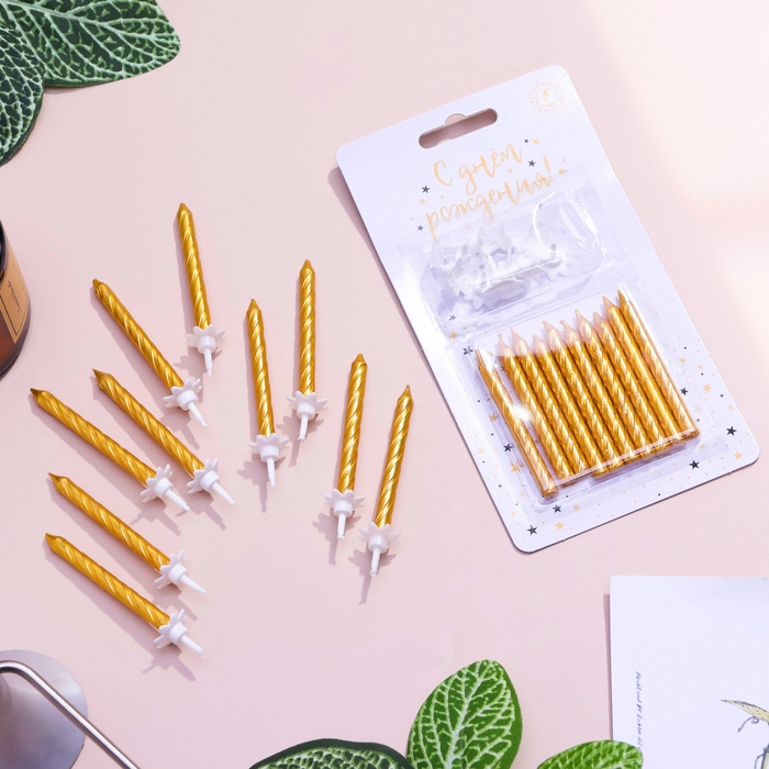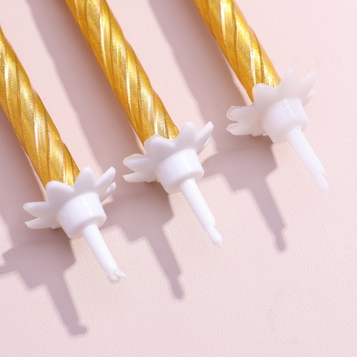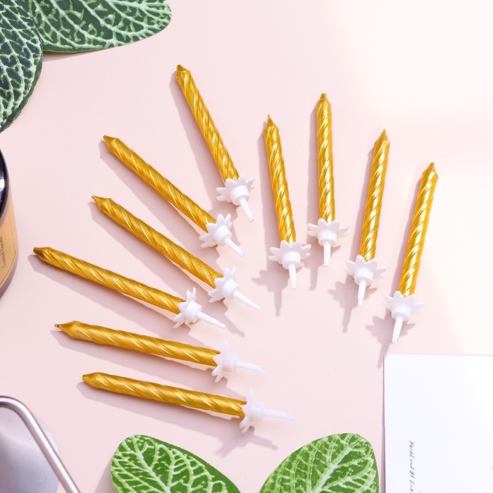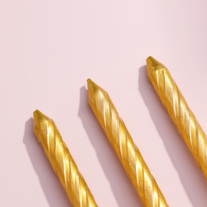 Свечи в торт "Спираль", 6 см, золотые, набор 10 шт