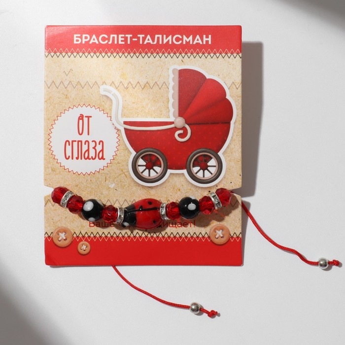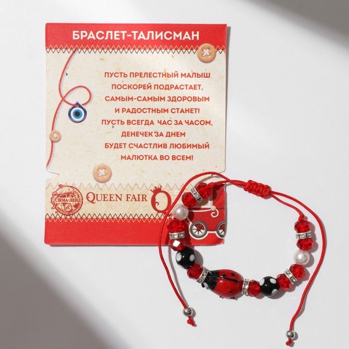 Браслет-оберег «Детский» божья коровка, цвет красно-белый, d=4 см