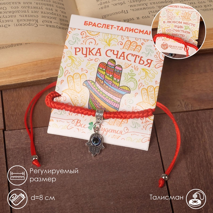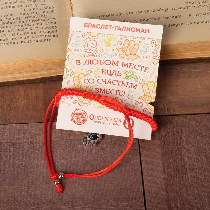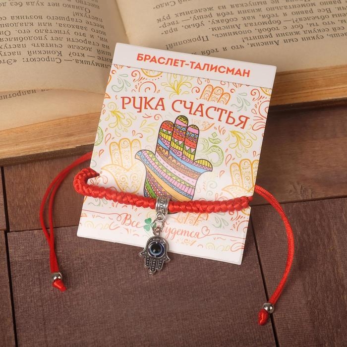 Браслет-оберег «Красная нить» талисман защиты, рука хамса на бусине, цвет синий в серебре, 8 см