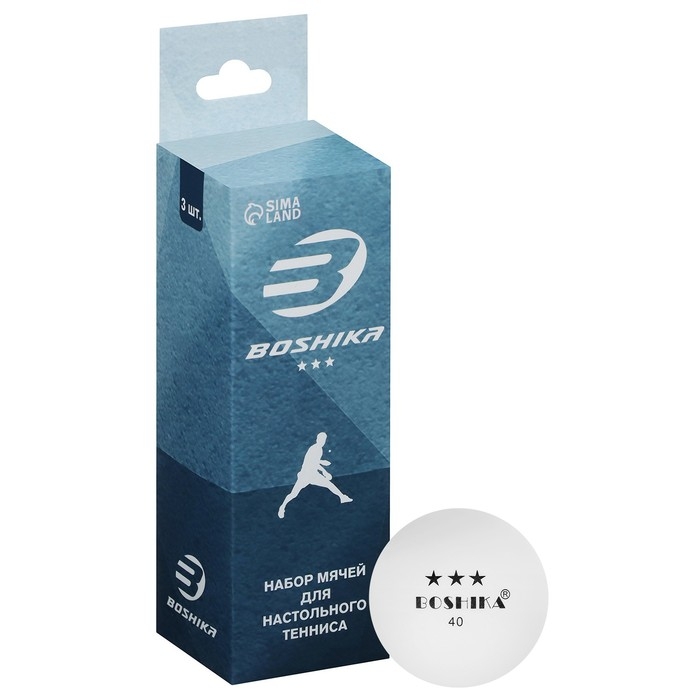 Мяч для настольного тенниса BOSHIKA 3***, набор 3 шт., PP, цвет белый