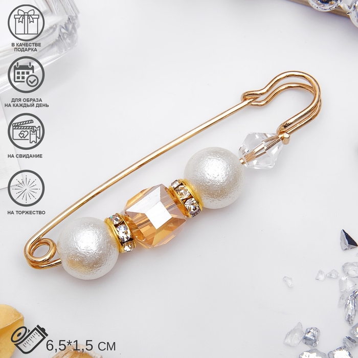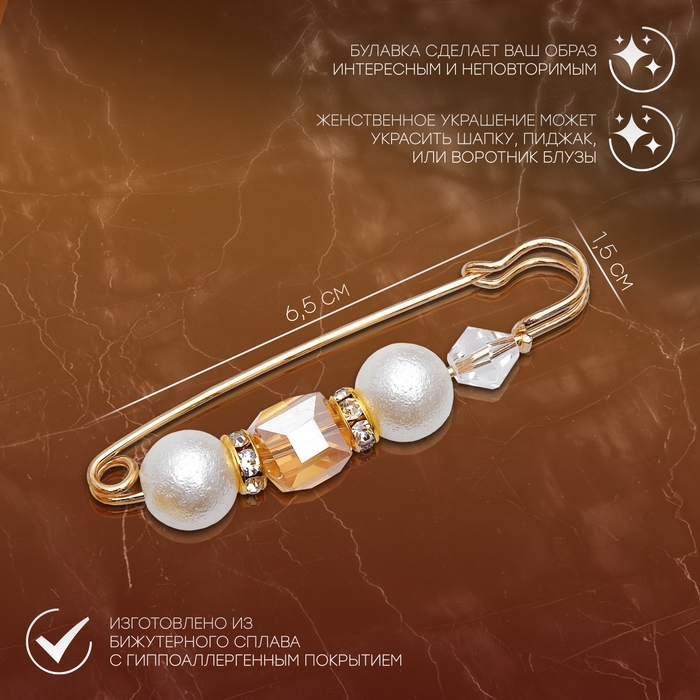 Булавка «Жемчужная россыпь» со стразами, 7,5 см, цвет белый в золоте