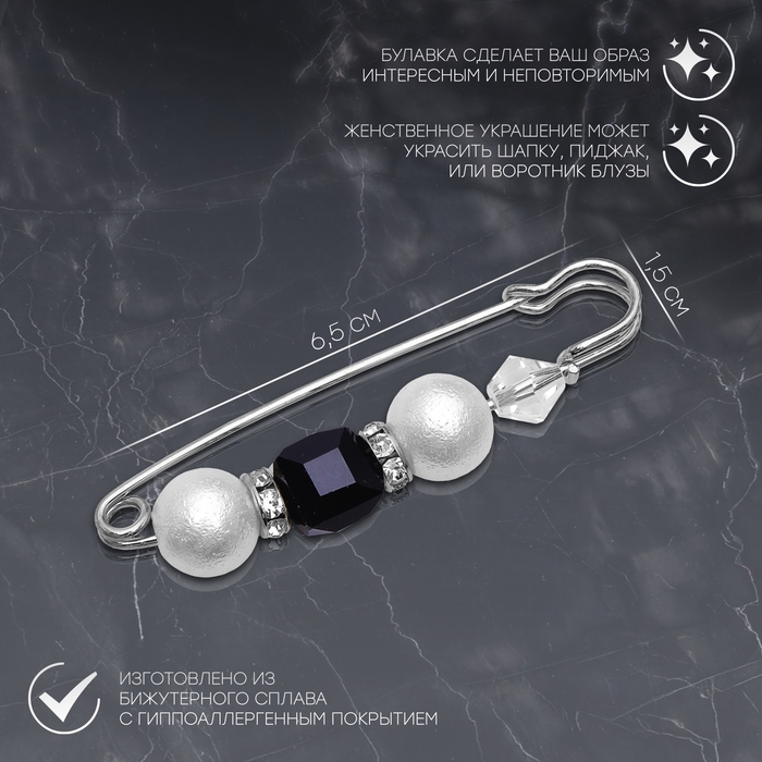 Данная булавка – настоящая находка для модниц, предпочитающих нетривиальные аксессуары. Брошь-булавка станет не только оригинальным дополнением вашего наряда, но и позволит без труда приколоть при необходимости палантин или шейный платок. Используйте её в качестве украшения шляпки, рубашки или галстука. Булавка «Кубик» 6,5 см, цвет бело-чёрный в серебре внесёт особую нотку изящности в ваш образ.