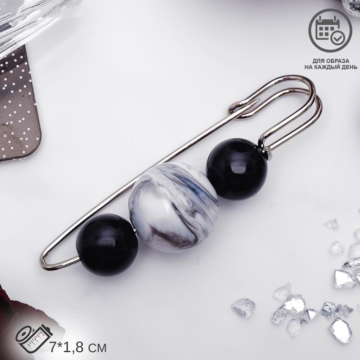Данная булавка – настоящая находка для модниц, предпочитающих нетривиальные аксессуары. Брошь-булавка станет не только оригинальным дополнением вашего наряда, но и позволит без труда приколоть при необходимости палантин или шейный платок. Используйте её в качестве украшения шляпки, рубашки или галстука. Булавка «Планеты» 7 см, цвет чёрно-белый в серебре внесёт особую нотку изящности в ваш образ.