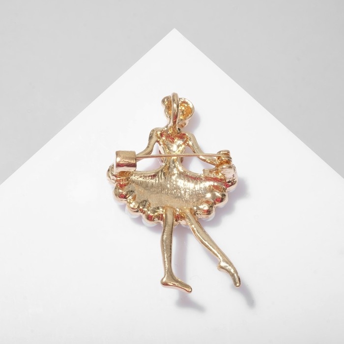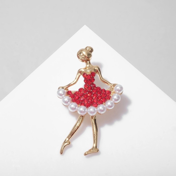 Брошь «Балеринка», цвет красно-белый в золоте