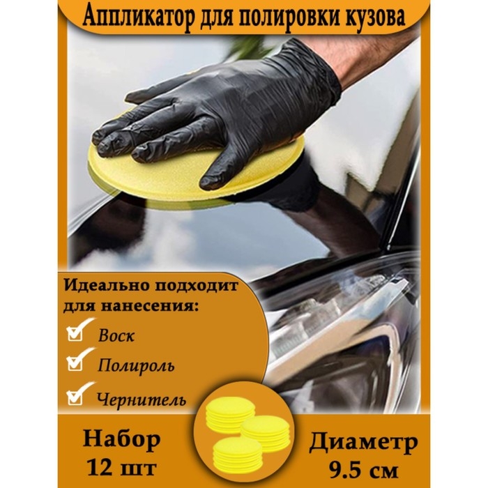 Аппликатор для полировки кузова, d-9.5 см, набор 12 шт