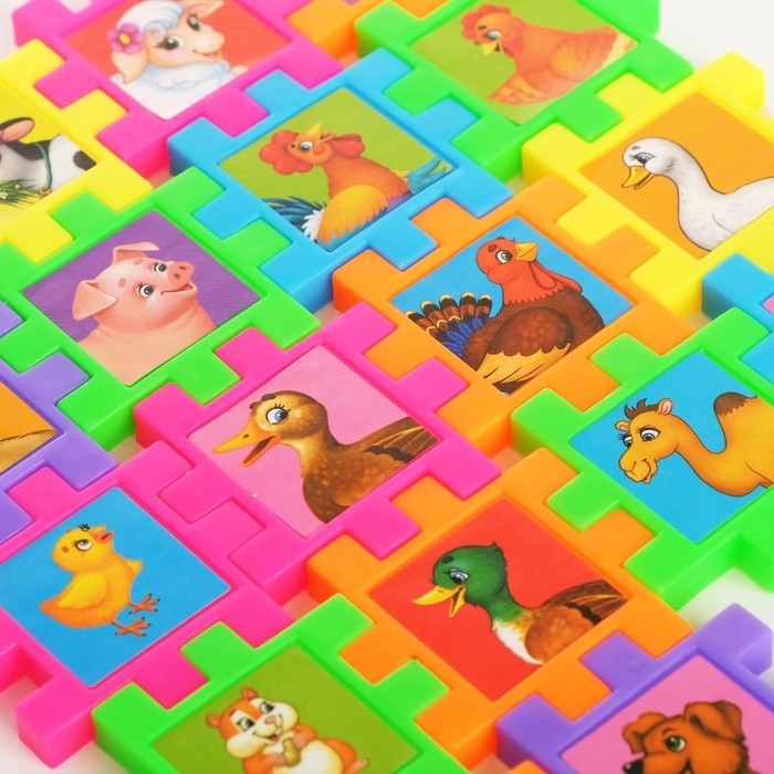 Мозаика-конструктор «Моя ферма», 18 деталей, пазл, пластик, животные, по методике Монтессори