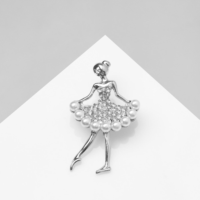 Брошь «Букет с жемчугом», цвет белый в серебре