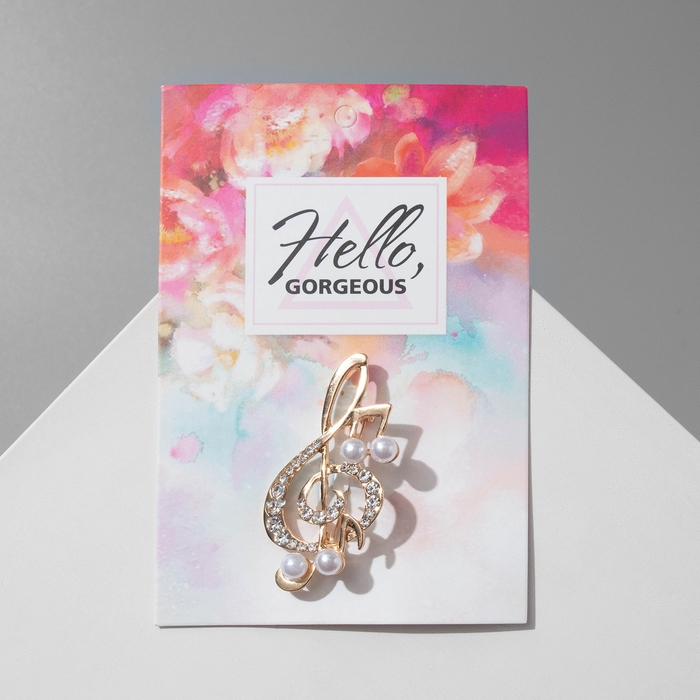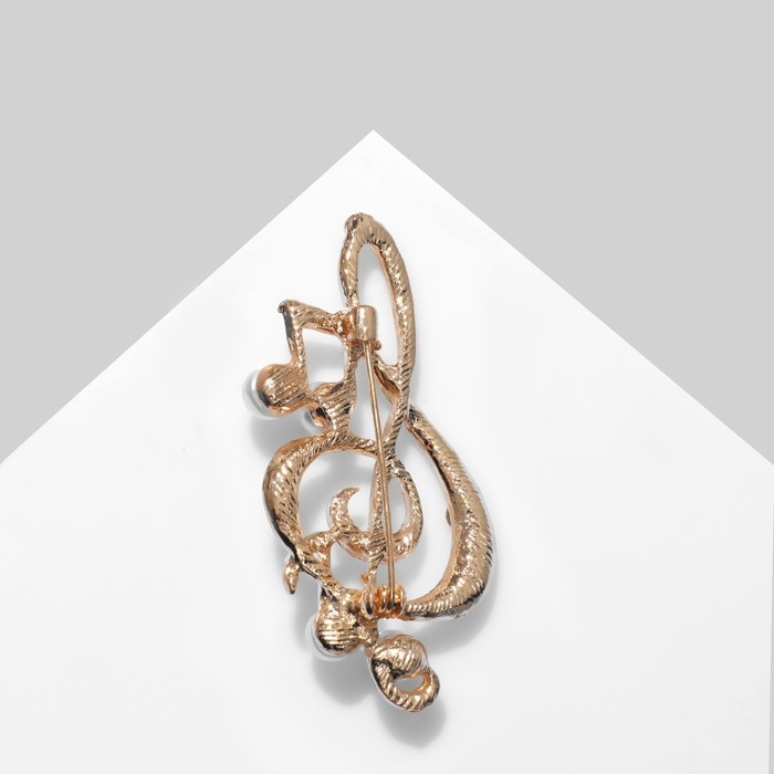 Брошь «Скрипичный ключ» с жемчужными нотками, цвет белый в золоте