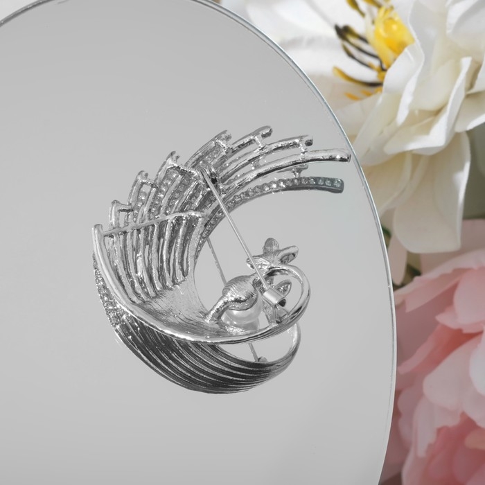 Брошь «Жар-птица» с жемчужиной, цвет бело-радужный в серебре