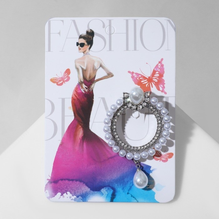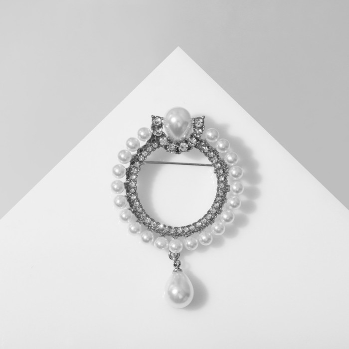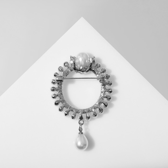 Брошь «Кольцо жемчужное» с подвеской, цвет белый в серебре