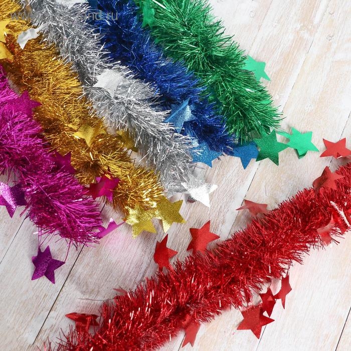 Мишура "Волшебство" звёзды, d-6 см, 200 см, микс