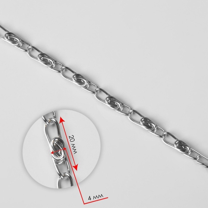 Цепочка для сумки, с карабинами, алюминиевая, 4 × 13 мм, 120 см, цвет серебряный
