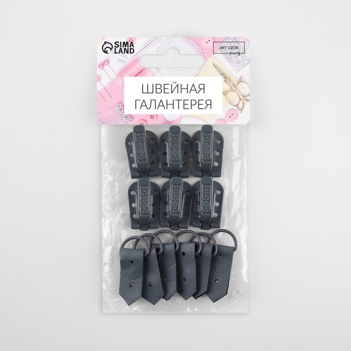 Крючки пришивные, металлические, для верхней одежды, 5 × 1,5 см, 6 шт, цвет серый