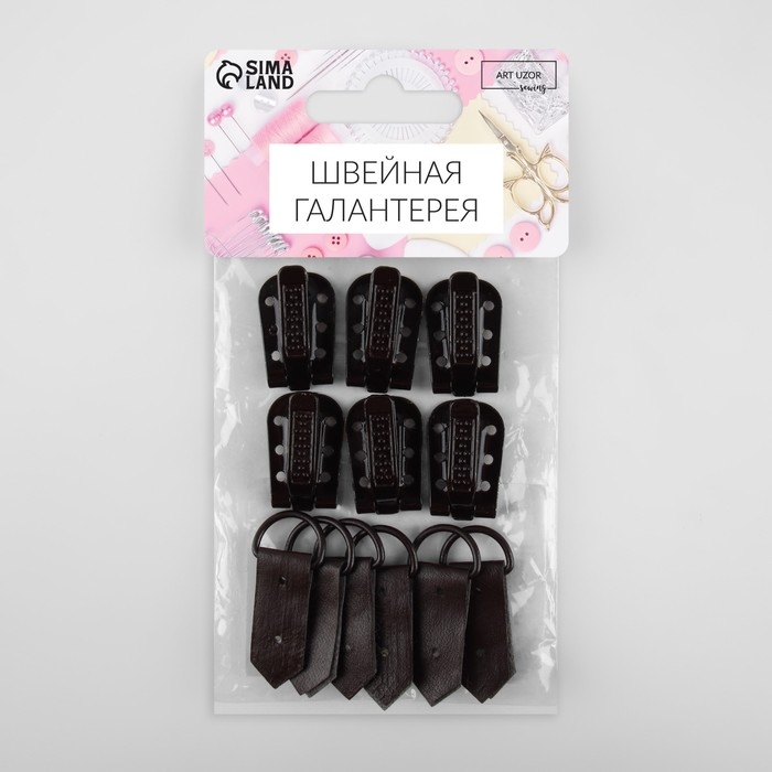 Крючки пришивные, металлические, для верхней одежды, 5 × 1,5 см, 6 шт, цвет коричневый