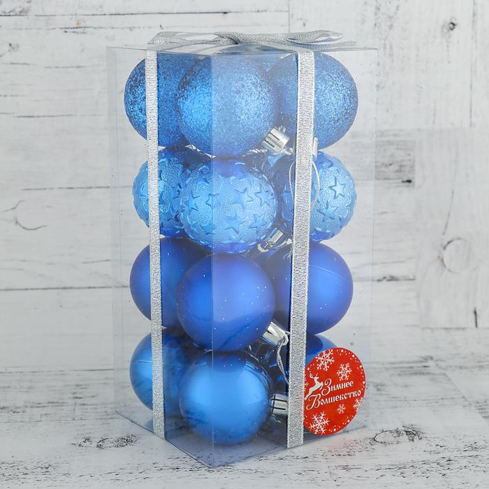 Набор шаров пластик d-5 см, 16 шт "Звёздная ночь" синий