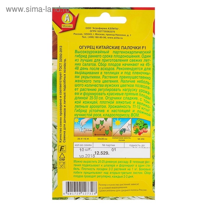 Семена Огурец "Китайские палочки" F1 партенокарпический, 10 шт